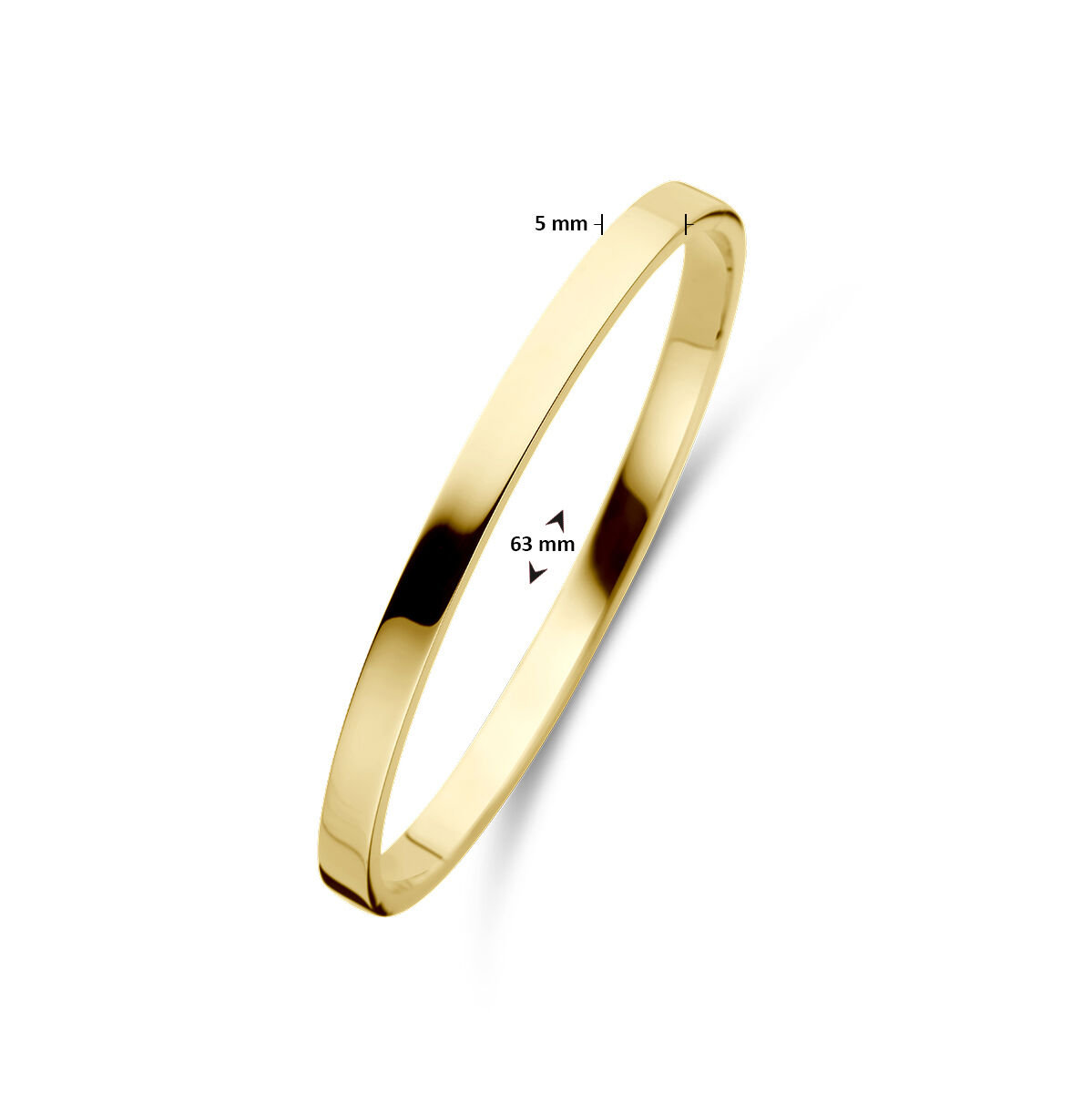 Sieraden van 14 karaat goud met daarin een kern van 925 zilver. Geelgouden bangle met scharnier-sluiting.