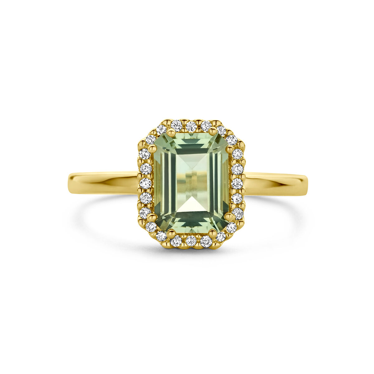 ring groen amethist en diamant 0.10ct h si halo
