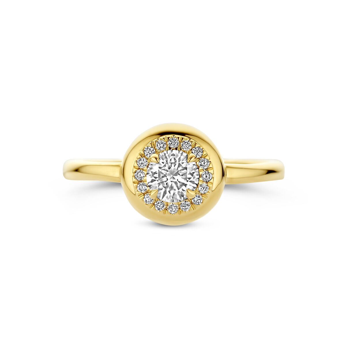 14k Geelgouden ring uitgevoerd met lab grown diamant. De ring heeft een breedte van 9mm. Het totale diamantgewicht is 0.49ct.