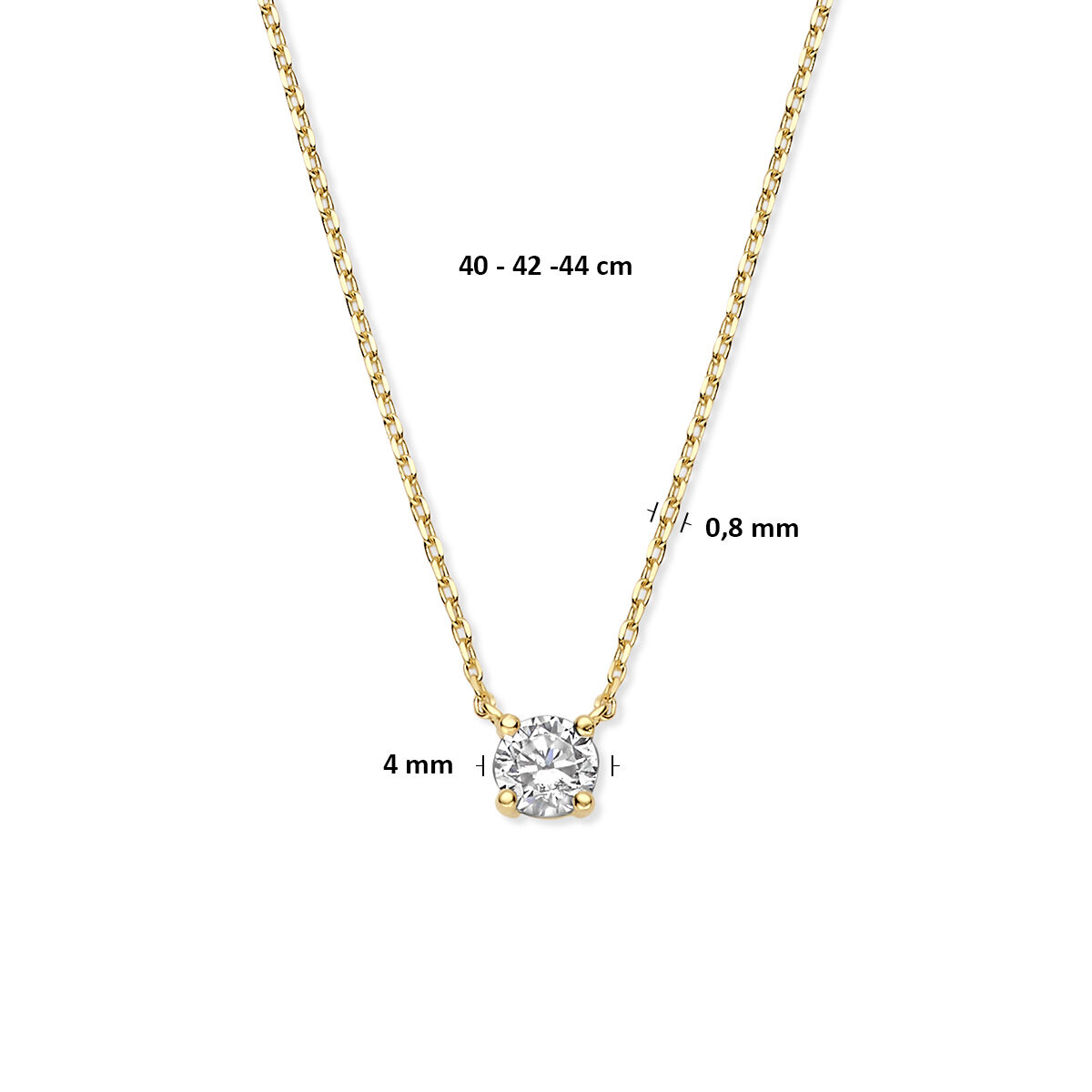 Collier en or jaune 14k avec zirconia mesurant 42cm de long. La largeur des maillons est de 0,8 mm. La pierre en zircone a un diamètre de 4mm.