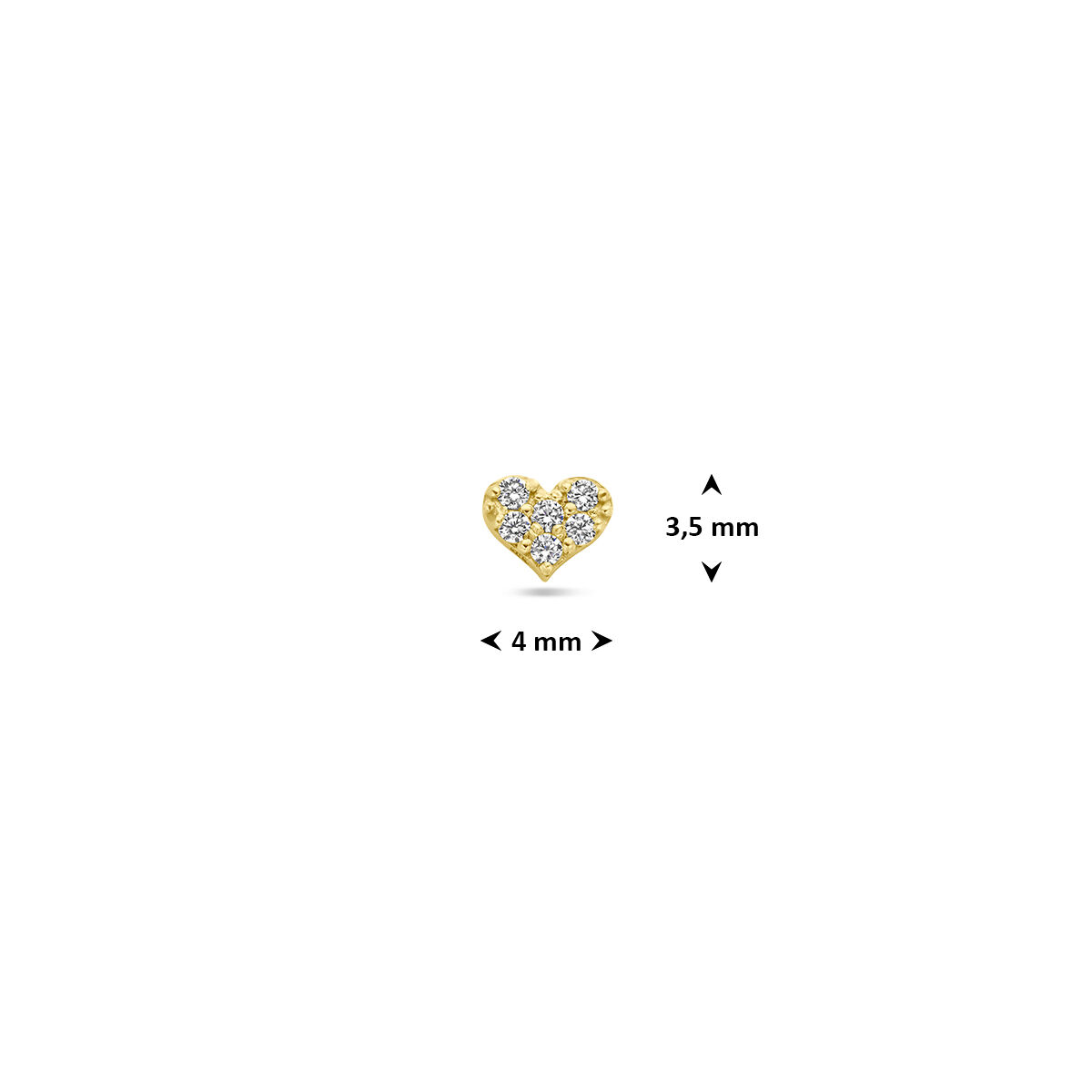 Piercing en or jaune 14k à dos plat avec filetage à vis exécuté avec de la zircone. Ce piercing a une taille de 3.5x4mm, une longueur de tube de 8mm et une épaisseur de tube de 1.0mm. Veuillez noter que ce piercing est disponible individuellement.