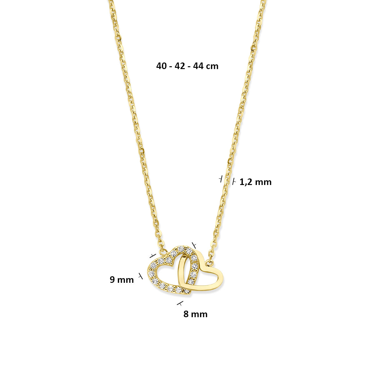14k Geelgouden collier uitgevoerd met een hartje en zirkonia. Het collier heeft draaglengtes van 40-42-44cm.