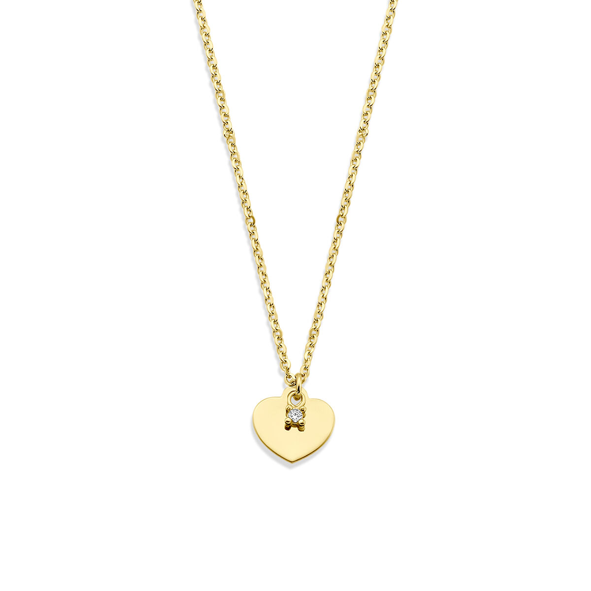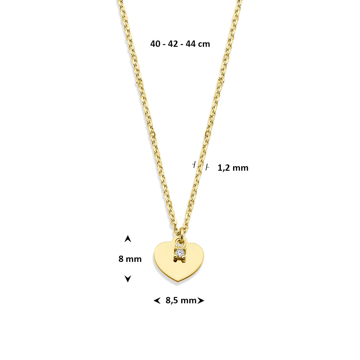 14k Geelgouden collier uitgevoerd met een hartje en zirkonia. Het collier heeft draaglengtes van 40-42-44cm.