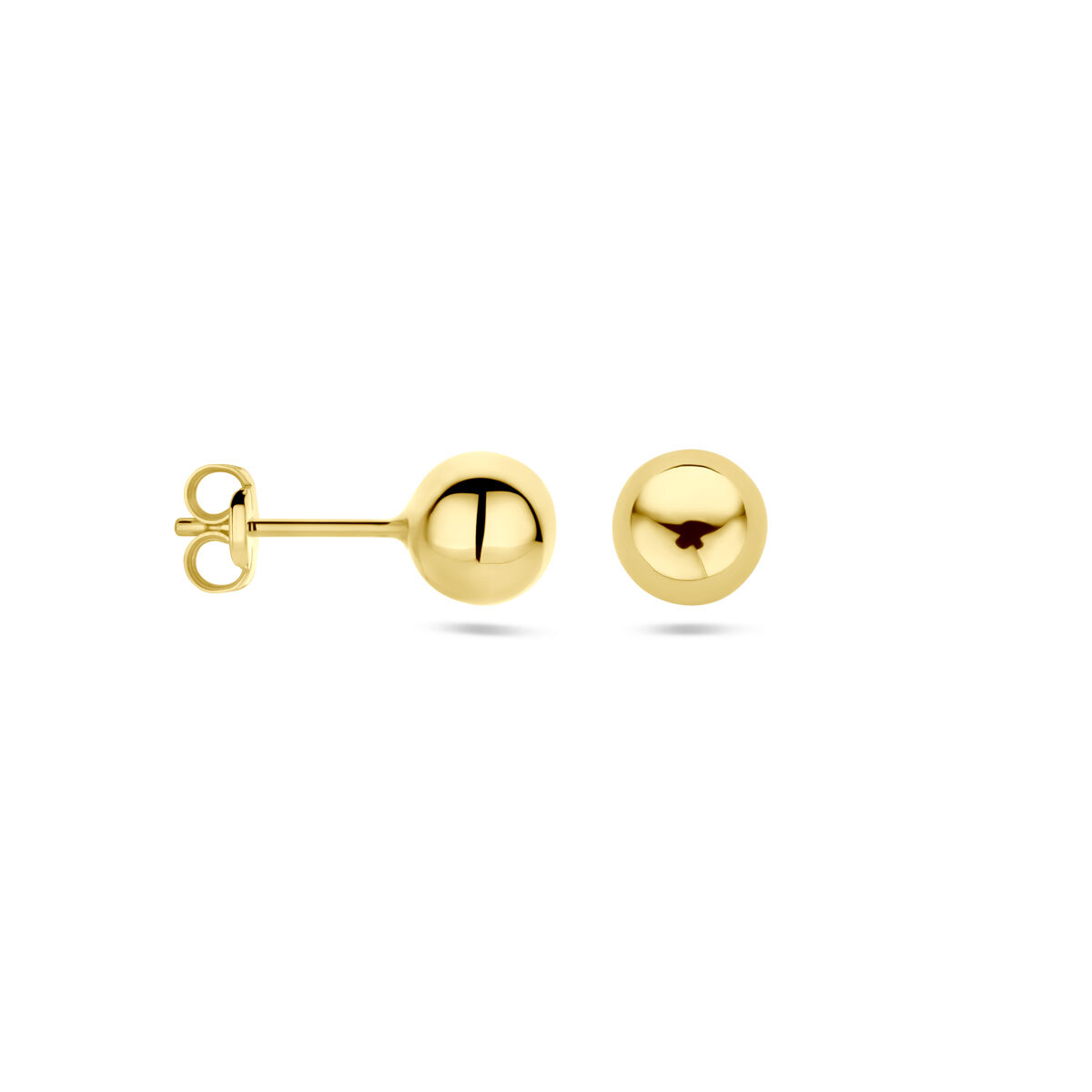 Geelgouden oorknoppen in de vorm van een bolletje. De oorknoppen zijn ook verkrijgbaar in het witgoud.
