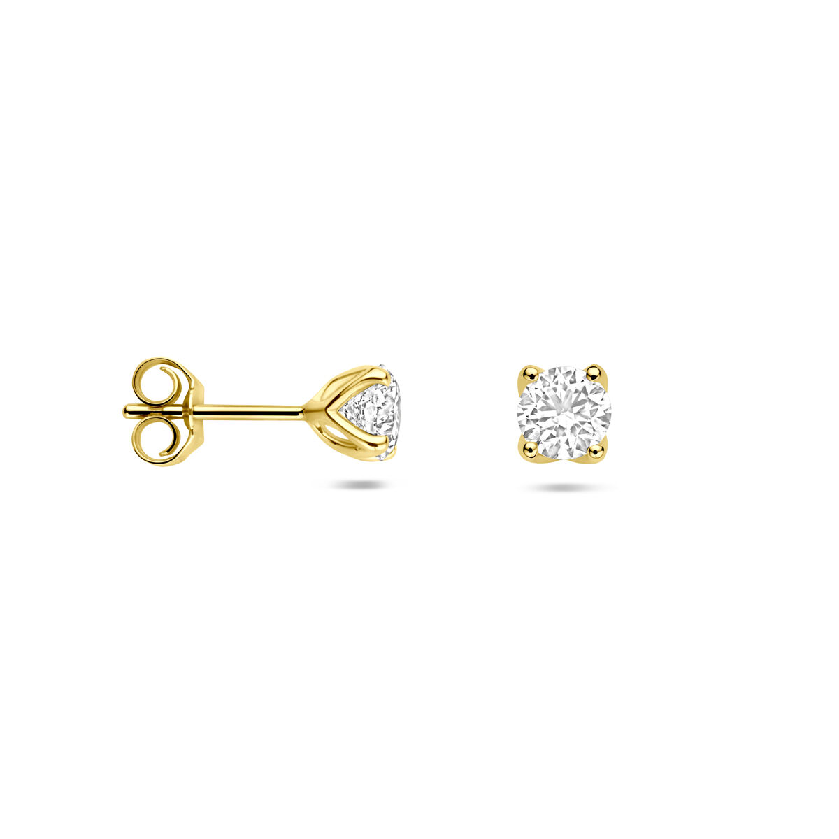 14k Geelgouden oorknoppen uitgevoerd met lab grown diamant. Het totale diamantgewicht is 1.0ct. Lab grown diamanten zijn diamanten die ontstaan in een laboratorium. Onder extreem hoge druk en temperatuur wordt het natuurlijk ontstaansproces nagebootst met als eindresultaat een diamant met dezelfde chemische eigenschappen maar met een andere oorsprong.