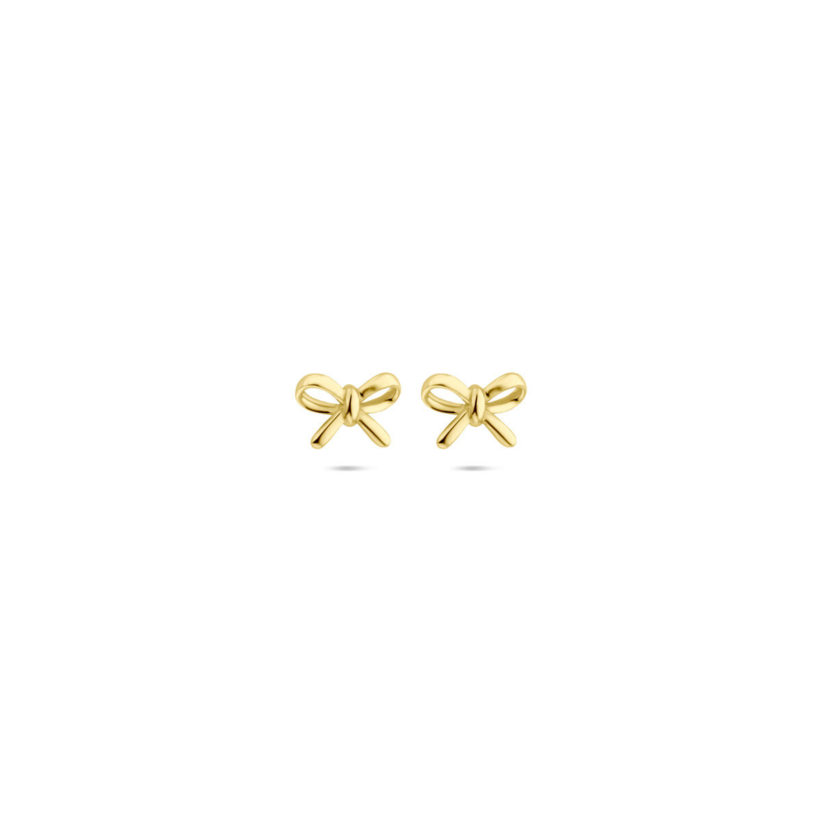 14k geelgouden oorknoppen uitgevoerd in de vorm van een strik met de afmeting van 4.5x6.5mm.