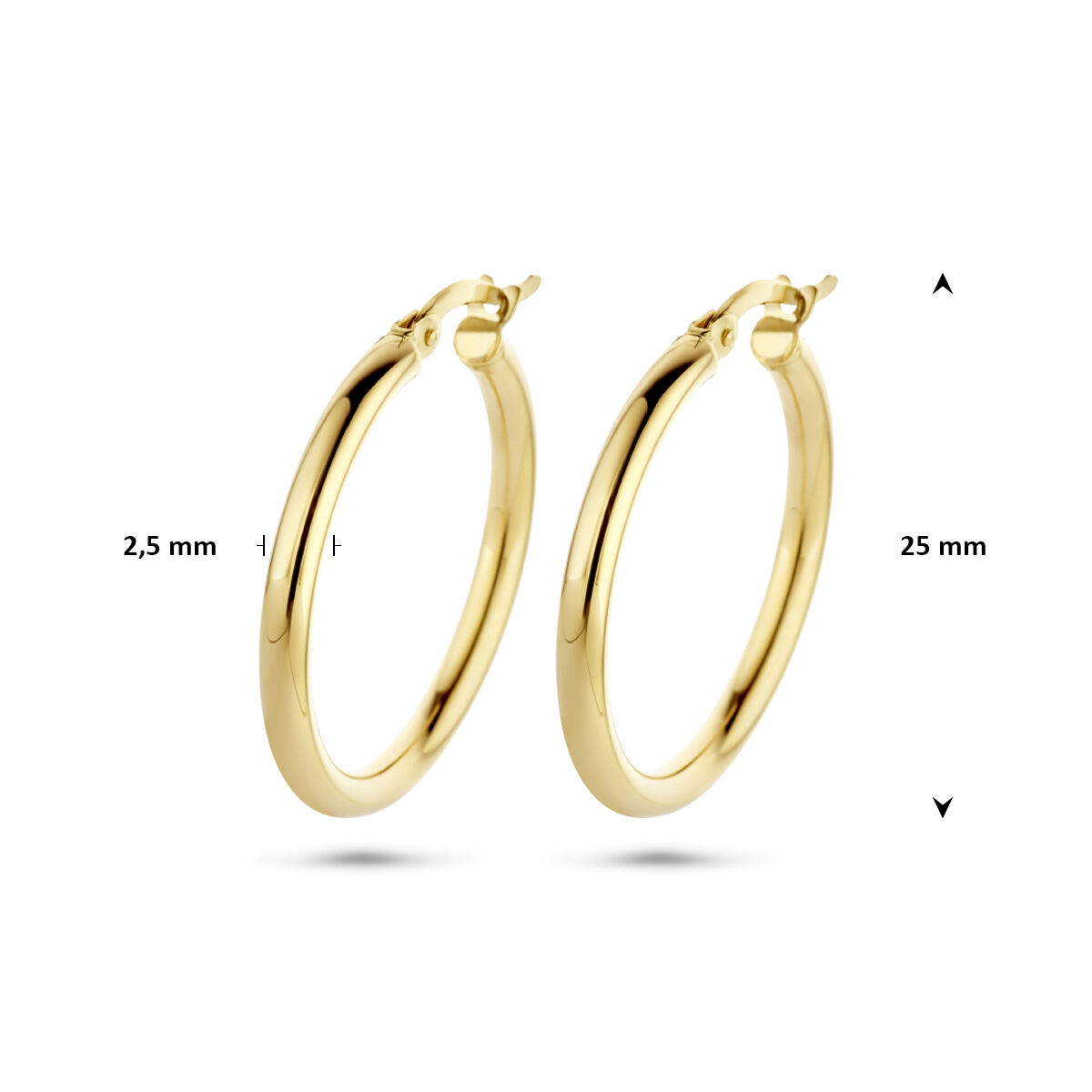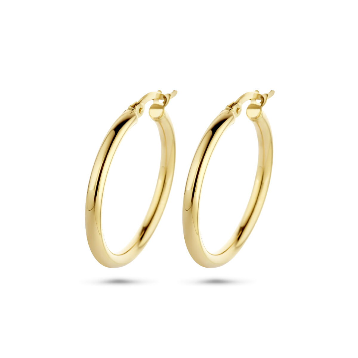 14k Geelgouden oorringen met een ronde buis en een hefboom-sluiting.