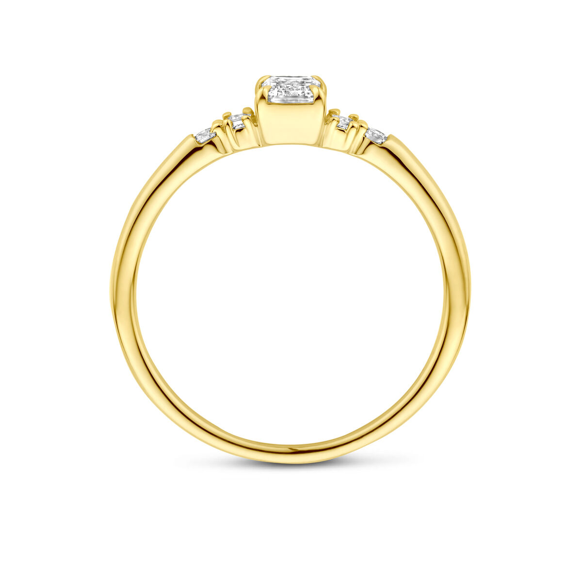 14k Geelgouden ring uitgevoerd met lab grown diamant. De steen heeft een afmeting van 5x3.5mm. Het totale diamantgewicht is 0.40ct. Lab grown diamanten zijn diamanten die ontstaan in een laboratorium. Onder extreem hoge druk en temperatuur wordt het natuurlijk ontstaansproces nagebootst met als eindresultaat een diamant met dezelfde chemische eigenschappen maar met een andere oorsprong.