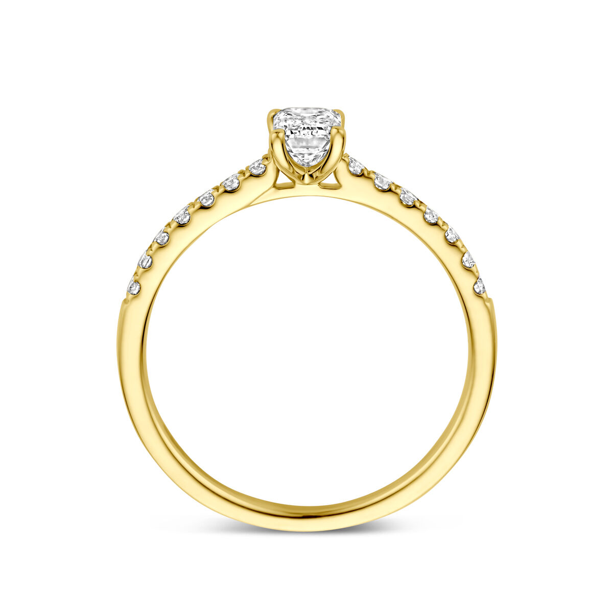 14k Geelgouden ring uitgevoerd met lab grown diamant. De steen heeft een afmeting van 5,5x4,0mm. Het totale diamantgewicht is 0.58ct. Lab grown diamanten zijn diamanten die ontstaan in een laboratorium. Onder extreem hoge druk en temperatuur wordt het natuurlijk ontstaansproces nagebootst met als eindresultaat een diamant met dezelfde chemische eigenschappen maar met een andere oorsprong.