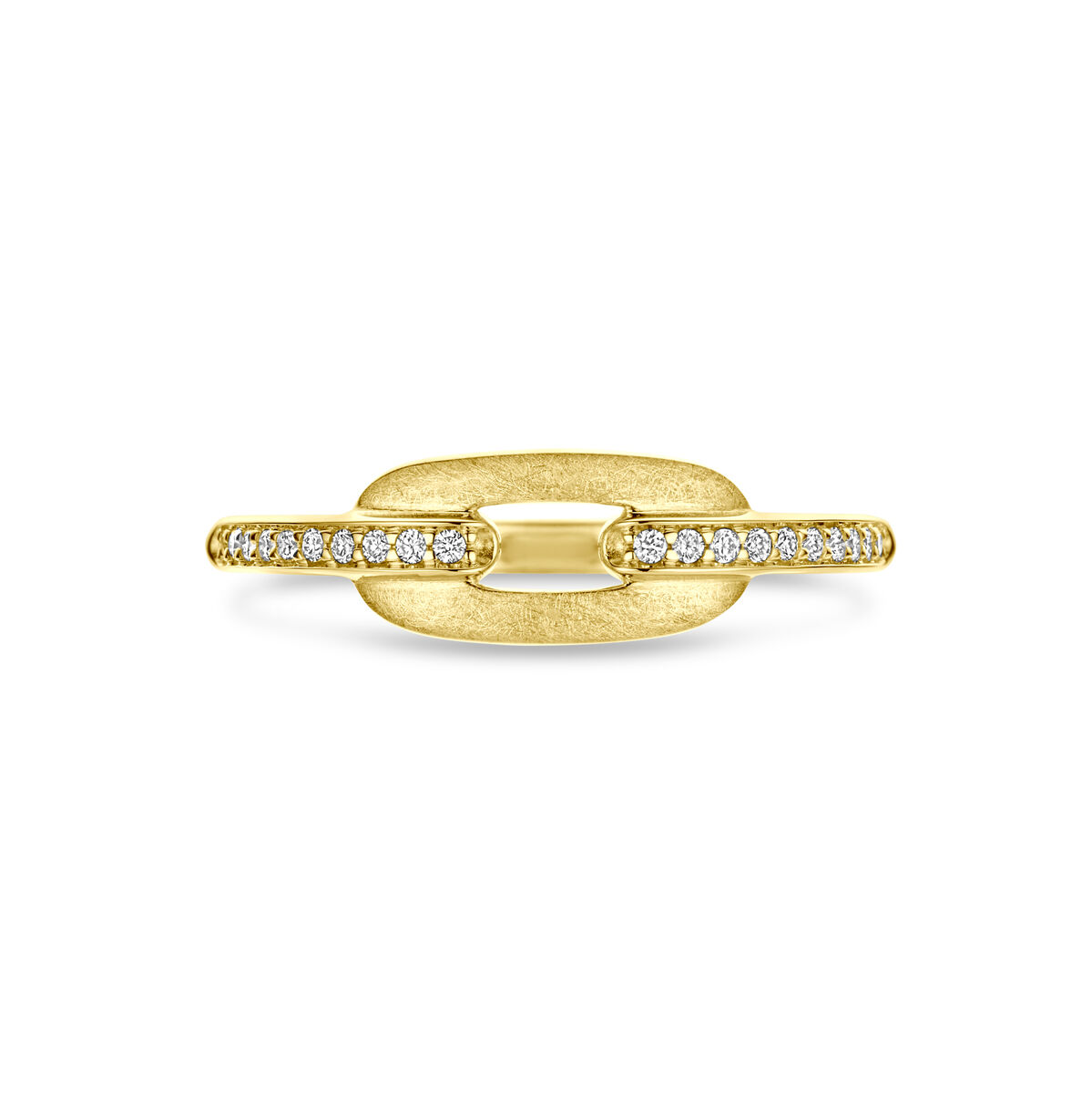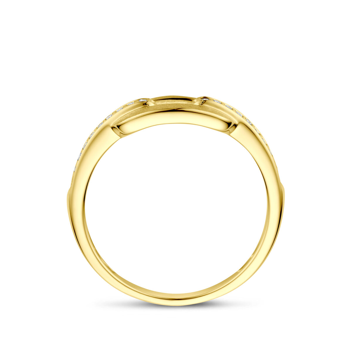 14k Geelgouden ring uitgevoerd met diamant. De ring heeft een breedte van 6mm. Het totale diamantgewicht is 0.08ct.