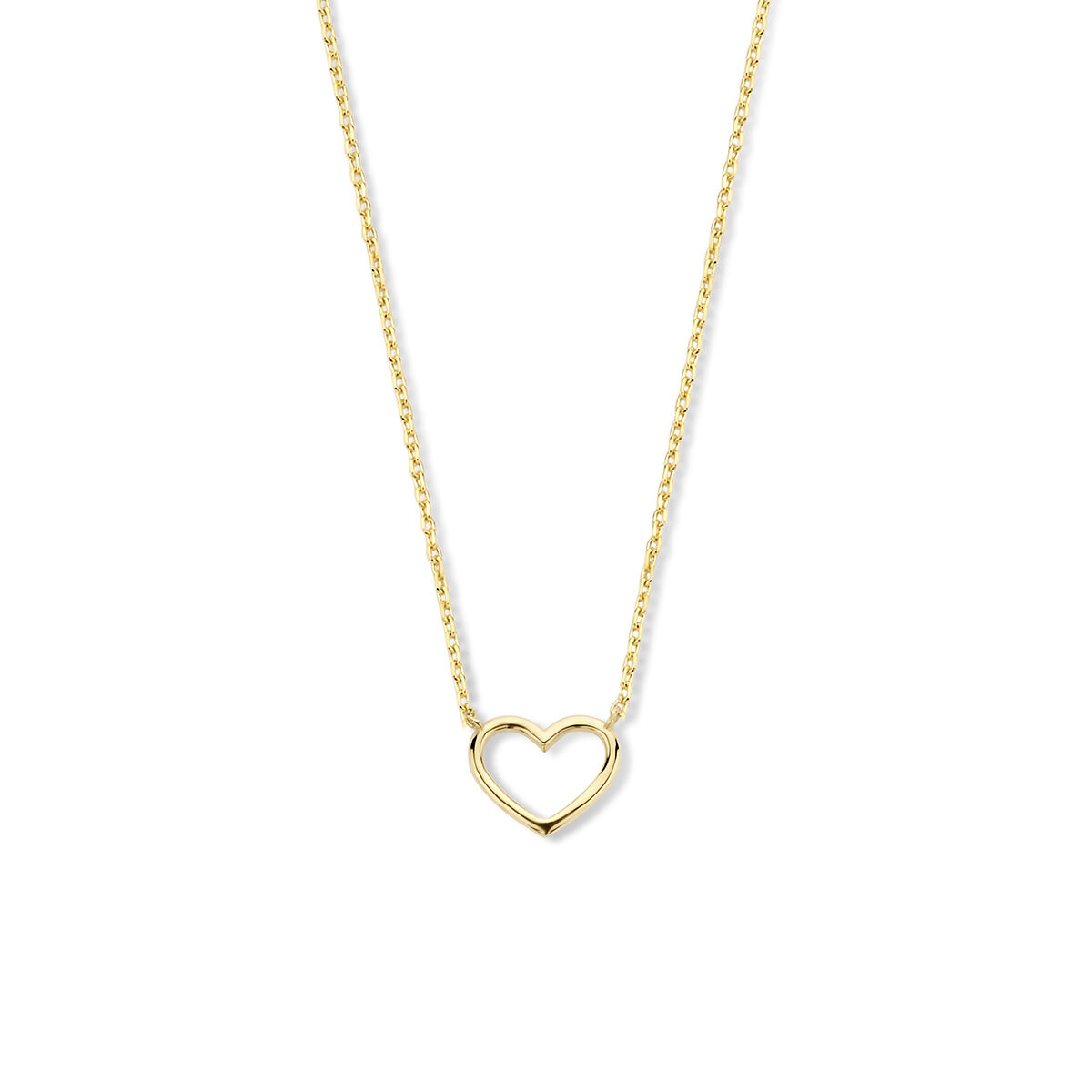 9k Geel kleurige collier uitgevoerd met een hartje. Het collier heeft draaglengtes van 40-42-44cm.