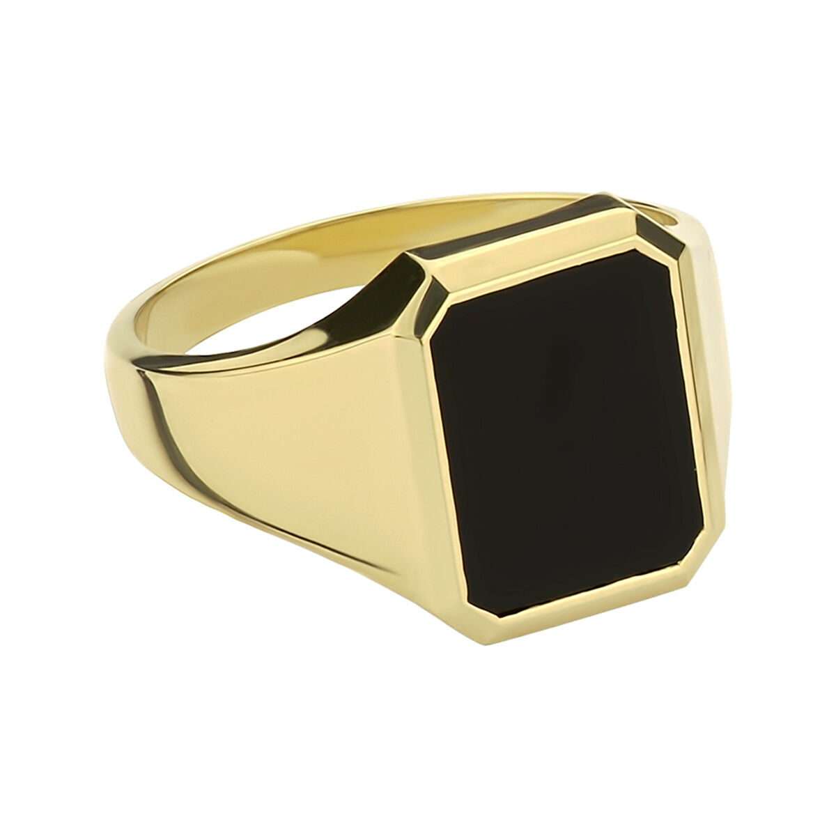 Stijlvolle geelgouden zegelring uitgevoerd met een onyx steen. De robuuste afkanteningen van de ring maken dit sieraad helemaal af. De ring geeft je look direct een chique uitstraling.